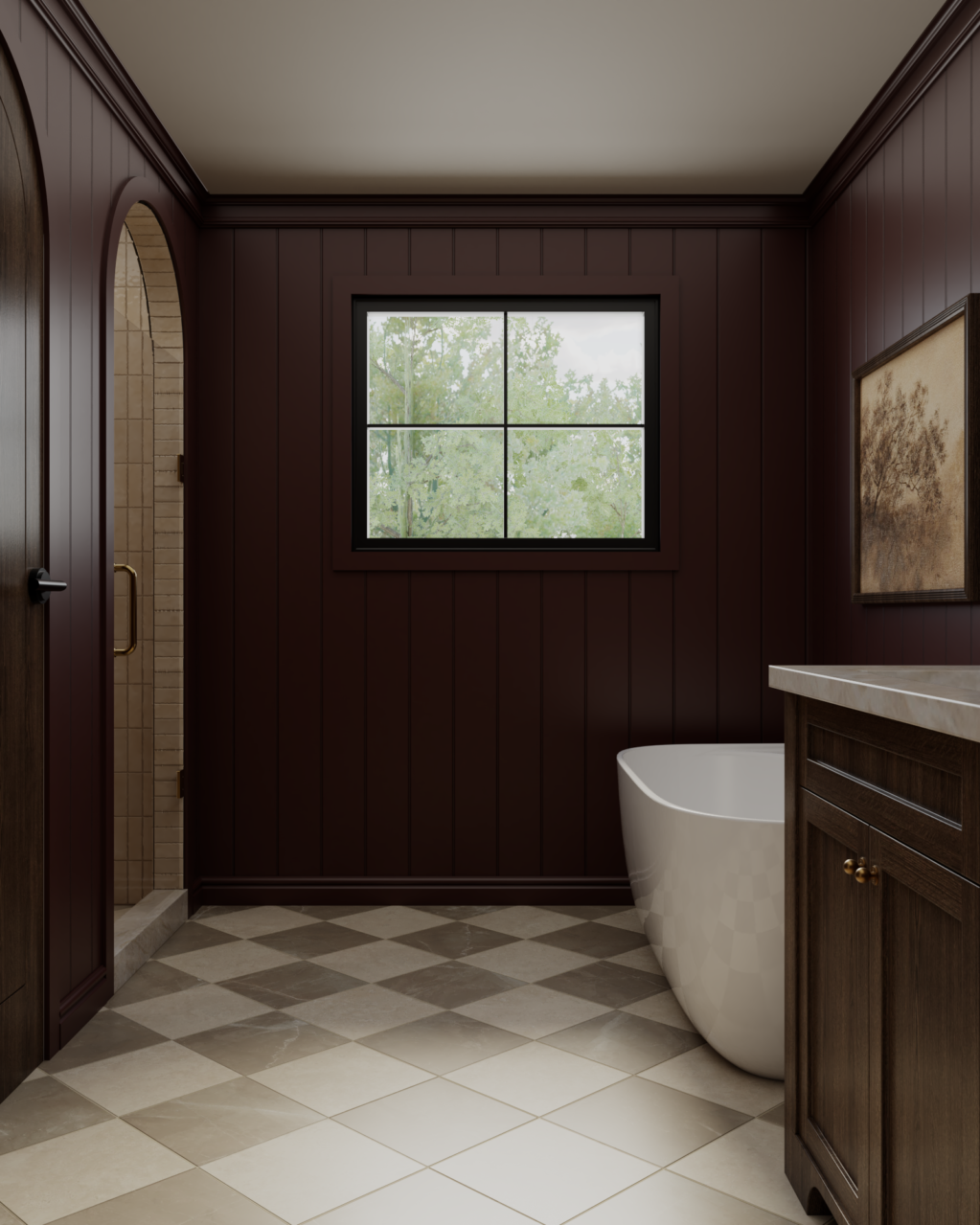 Moody and darker doesn’t have to mean gloomy. The goal for this master bathroom was to create a more traditional look with rich colors and character, without making the space feel too heavy.